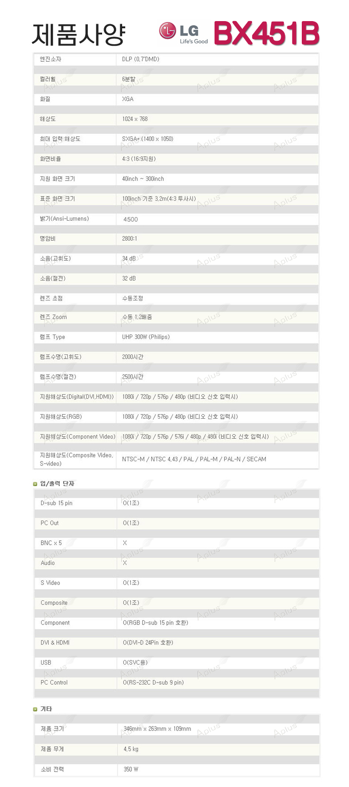 ¸ðµ¨¸í ¢º LGÀüÀÚ 45000¾È½Ã BX451B-JD DLPÇÁ·ÎÁ§ÅÍ
