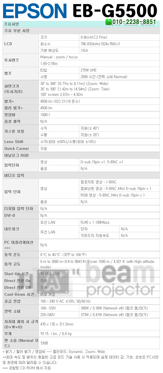EPSON(¿¦¼Õ ºöÇÁ·ÎÁ§ÅÍ) EB-G5500 ¿µ»ç±â±â¶û