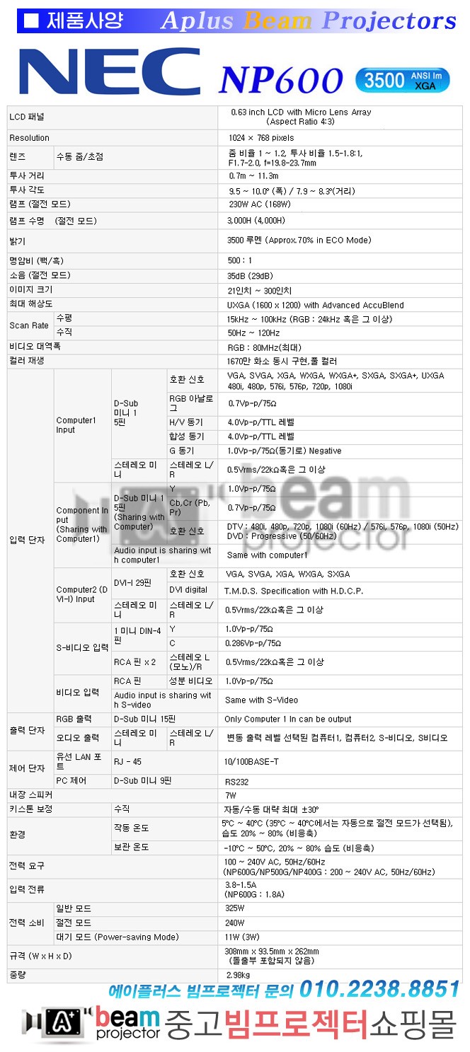 [ÆË´Ï´Ù]Àú¼ÒÀ½ 3500¾È½Ã NEC NP600G Áß°íºöÇÁ·ÎÁ§ÅÍ[A+ºöÇÁ·ÎÁ§Æ®]