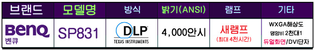 º¥Å¥ HD±Þ Áß°í ºöÇÁ·ÎÁ§ÅÍ 4000¾È½Ã BenQ SP831 ÀÔ´Ï´Ù.