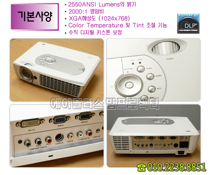 2550¾È½Ã·ç¸àÀÇ ¹à±â, 2,000:1 ¸í¾Ïºñ, XGA¿Í SXGAÇØ»óµµ¸¦ Áö¿øÇϰí