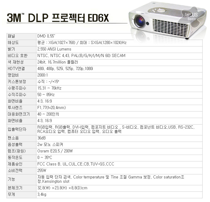 [ÆË´Ï´Ù]3M DLP µðÁöÅÐÇÁ·ÎÁ§ÅÍ ED6X Áß°íºöÇÁ·ÎÁ§Æ®