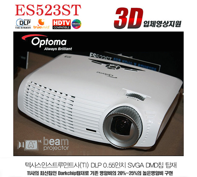 ±âº» ¹à±â 2500¾È½Ã ·ç¸à¿¡ ¸í¾Ïºñ´Â 3õ´ë1 Áß°í ¿ÉÅ丶 ES523ST ºöÇÁ·ÎÁ§ÅÍÀ̸ç, ÃÊ´ÜÃÊÁ¡ ·»Áî·Î ªÀº °Å¸®¿¡¼­µµ ´ëÈ­¸éÀ» º¼ ¼ö ÀÖ´Â ÇÁ·ÎÁ§ÅÍ ÀÔ´Ï´Ù. ÇϾá»öÀº ´õ¿í ¹à°Ô Åõ»çÇØ ¹àÀº ȯ°æ¿¡ ¼­µµ ¼±¸íÇÑ ¿µ»óÀ» Ç¥ÇöÇÒ ¼ö ÀÖ½À´Ï´Ù. 3DÀÔü¿µ»óµµ Áö¿øÇϱ⠶§¹®¿¡ ±³À°Àڷᳪ, °¡Á¤¿¡¼­ 3D¿µÈ­ ½ÃûÀÌ °¡´ÉÇϸç, º°µµÀÇ ½ÅÈ£¼Û½Å±â°¡ ÇÊ¿ä¾øÀÌ 3DÀÔü ¾È°æ¸¸ ÀÖÀ¸¸é ½Ç°¨³ª´Â ¿µ»óÀ» Áñ±æ ¼ö ÀÖ½À´Ï´Ù.