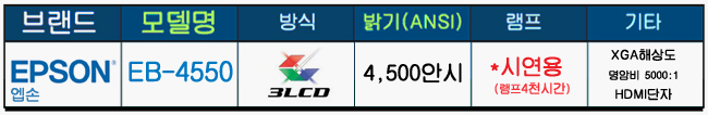 4500¾È½Ã(5000¾È½Ã±Þ) EPSON EB-4550 - ½Ã¿¬¿ë Á¦Ç° ÀÔ´Ï´Ù.