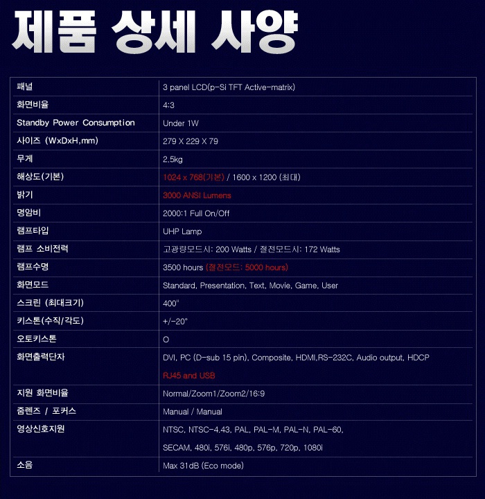 [ÆË´Ï´Ù]»ï¼º ÇÁ·ÎÁ§ÅÍ SP-M305W Áß°íºöÇÁ·ÎÁ§Æ® USB/HDMI 3000¾È½Ã