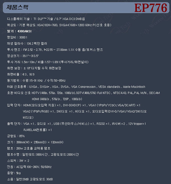 ±³À°¿ë ÇÁ·ÎÁ§ÅͰ¡ ÁÖ·Î ³ÐÀº °ø°£¿¡¼ »ç¿ëµÇ±â ¶§¹®¿¡ EP776 ¸ðµ¨Àº