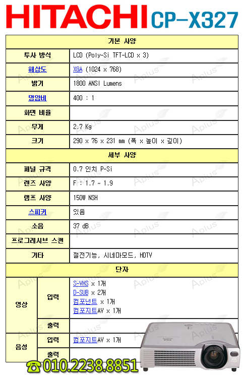 È÷Ÿġ CP-X327 ÇÁ·ÎÁ§ÅÍ´Â ÀÛÁö¸¸ Àß ¸¸µé¾îÁø Áß°íºöÇÁ·ÎÁ§ÅÍ ±¹³» ½Åµµ¸®ÄÚ¿¡¼­ ¼öÀÔÇØ¼­