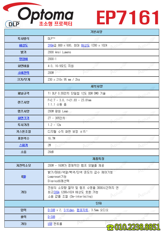 ¸ðµ¨¸í ¢º ¿ÉÅ丶 EP7161 (2000¾È½Ã) Optoma DLPÇÁ·ÎÁ§ÅÍ