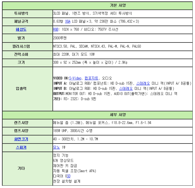 2,000¾È½Ã ÇØ»óµµ 1,024*768(XGA±Þ)À» ä¿ëÇÑ LCDÇÁ·ÎÁ§ÅÍÀÔ´Ï´Ù.