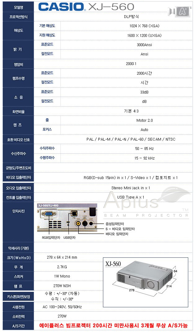USB´ÜÀÚ¸¦ ÀÌ¿ëÇÑ PC,³ëÆ®ºÏÁ¶ÀÛµµ °¡´ÉÇÑ Ä«½Ã¿À XJ-560 ÇÁ·ÎÁ§ÅÍ ¸ðµ¨Àº Èĸé USB´ÜÀÚ¿¡
