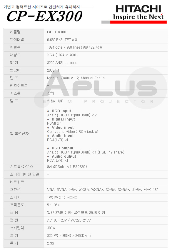 ±â º» XGAÇØ»óµµ, °í¼´É, °íÈ¿À² ·¥ÇÁ°¡ žÀçµÈ È÷Ÿġ CP-EX300 ÀÔ´Ï´Ù.