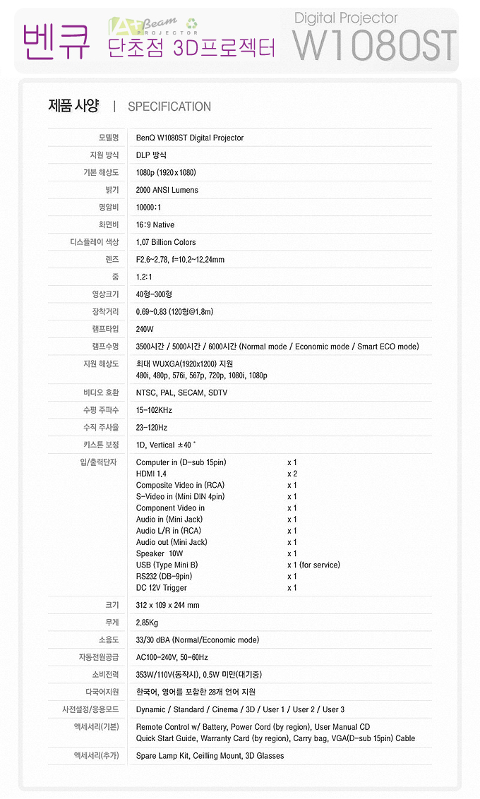 Ç®HD±Þ Áß°íºöÇÁ·ÎÁ§ÅÍ º¥Å¥ W1080st ´ÜÃÊÁ¡ µðÁöÅÐ 3DÇÁ·ÎÁ§ÅÍ ÀÔ´Ï´Ù.