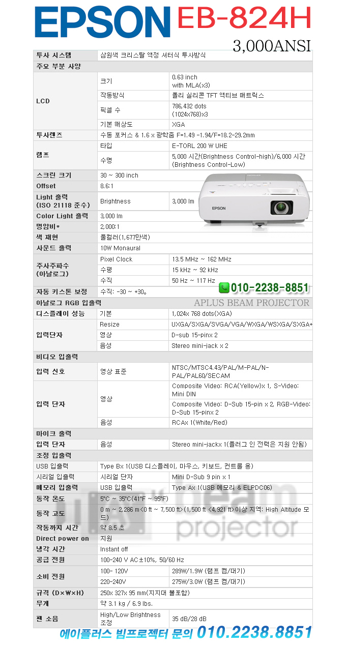 3000¾È½Ã·ç¸à ¿¦¼Õ EB-824H ÇÁ·ÎÁ§ÅÍ LCD¹æ½ÄÀÔ´Ï´Ù.