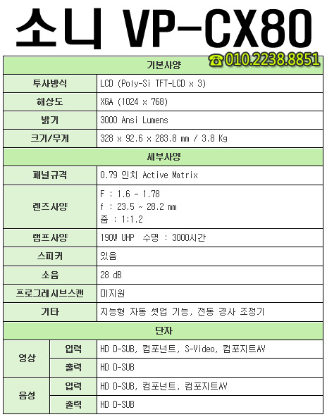 [ÆË´Ï´Ù]Áß°íºöÇÁ·ÎÁ§ÅÍ »õ·¥ÇÁ ¼Ò´Ï VPL-CX80 ¿¡À̺öÇÁ·ÎÁ§Æ®