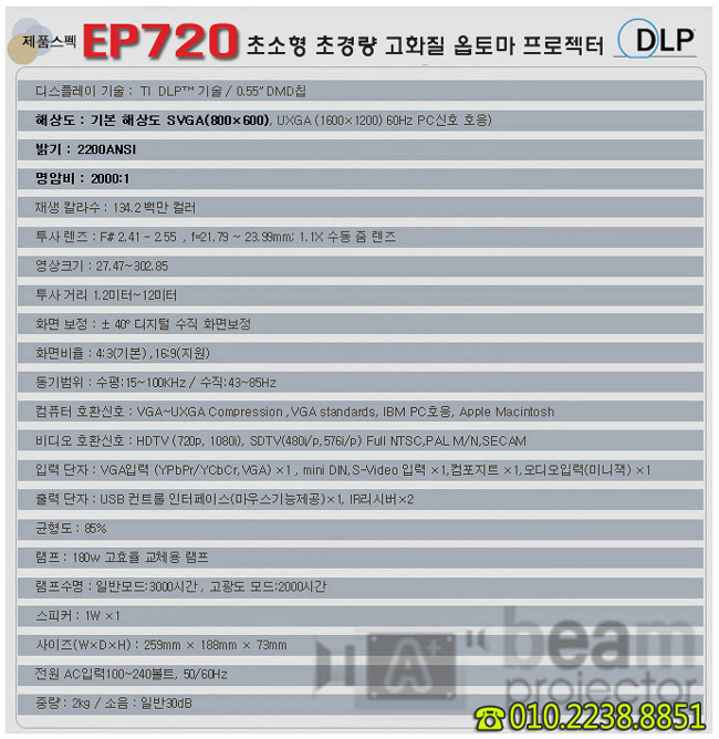 Áß°íºöÇÁ·ÎÁ§ÅÍ,ÃʼÒÇüÇÁ·ÎÁ§ÅÍ,¿ÉÅ丶ÇÁ·ÎÁ§ÅÍ,EP720,DLPÇÁ·ÎÁ§ÅÍ,Áß°íºöÇÁ·ÎÁ§Æ®