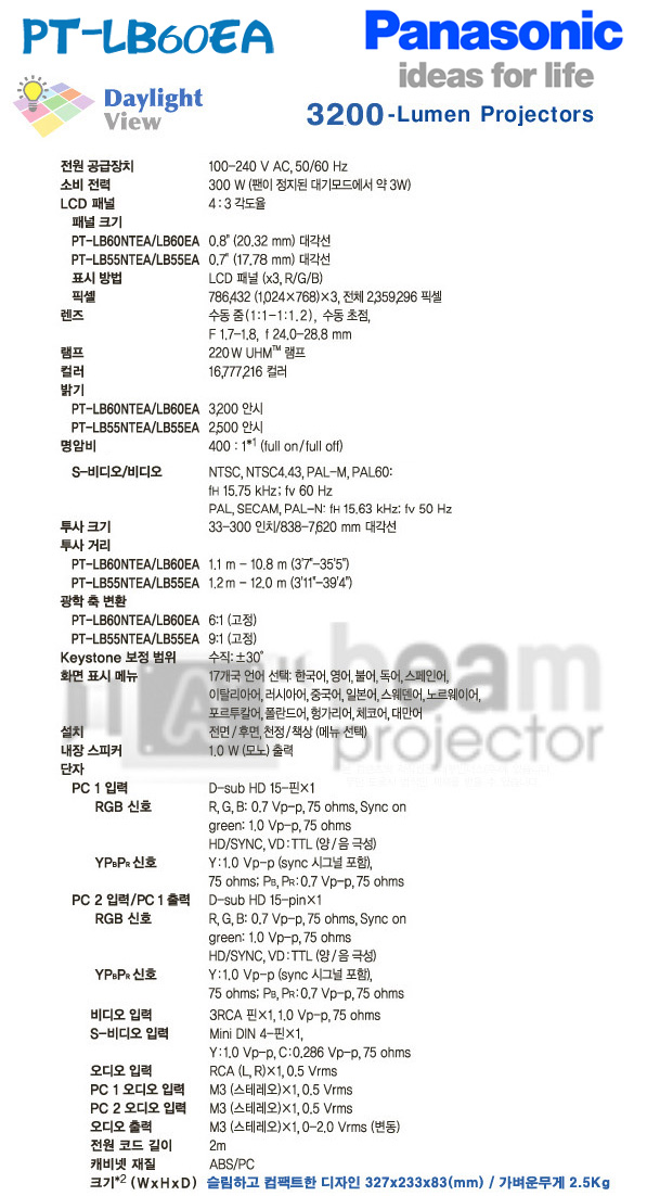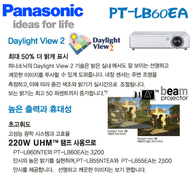 *Daylight View2* ±â´ÉÀÇ Áß°íºöÇÁ·ÎÁ§ÅÍ ÆÄ³ª¼Ò´Ð PT-LB60EA