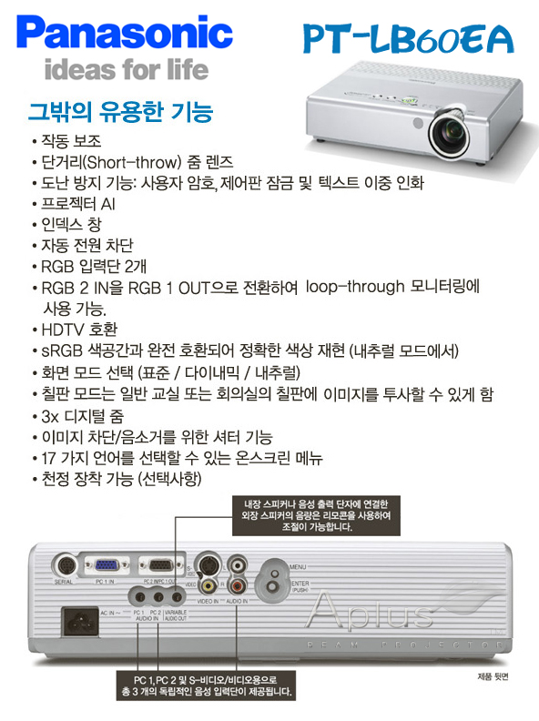 ÆÄ³ª¼Ò´Ð PT-LB60EA ÇÁ·ÎÁ§ÅÍ Áß°í ´Ù¾çÇÑ ¼º´ÉÀ» °¡Áø Âü ¶È¶ÈÇÑ ÇÁ·ÎÁ§Åͷνá,
