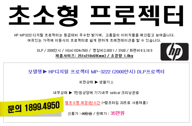 HP ÃʼÒÇü ÇÁ·ÎÁ§ÅÍ Áß°í MP-3222 ºöÇÁ·ÎÁ§ÅÍ¿Í °°ÀÌ Á¦°øµÇ´Â