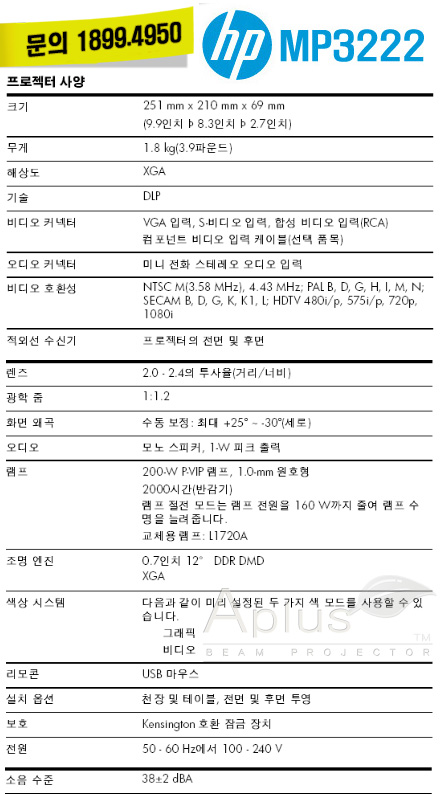 Æ÷ÅͺíÇÁ·ÎÁ§ÅÍÀÇ »õ·Î¿î µ¿¹ÝÀÚ DLP¹æ½Ä HP MP-3222 Áß°íºöÇÁ·ÎÁ§ÅÍ