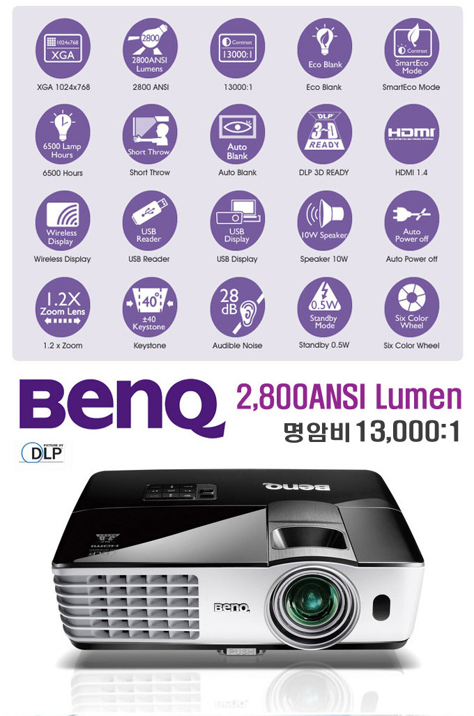 ÃÖ°íÀÇ ´Ù±â´É¼º º¥Å¥ DLP ÇÁ·ÎÁ§ÅÍ! DLP¹æ½ÄÀÇ ÀåÁ¡ÀÎ ³ôÀº ¸í¾Ïºñ(13,000:1)¸¦ ¹ÙÅÁÀ¸·Î