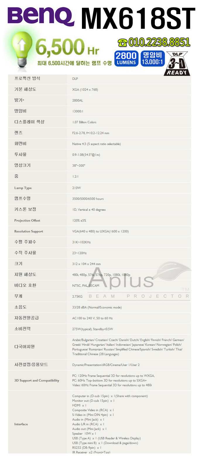 3DÇÁ·ÎÁ§ÅÍ º¥Å¥ Áß°íºöÇÁ·ÎÁ§ÅÍ BenQ MX618ST ¿¡ÀÌÇ÷¯½º ºöÇÁ·ÎÁ§Æ®