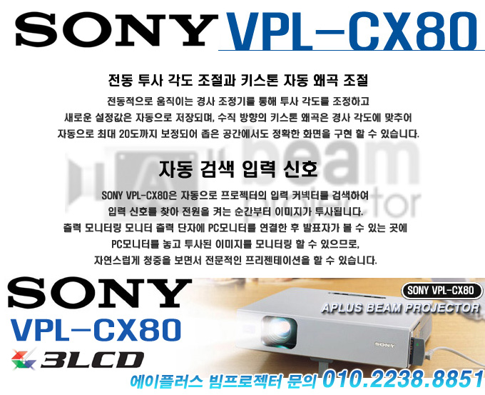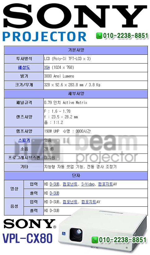 ¼Ò´ÏÇÁ·ÎÁ§ÅÍ Áß°í SONY VPL-CX80 3000ANSI Lumen XGA(1024*768)ÇØ»óµµ ºöÇÁ·ÎÁ§Æ®