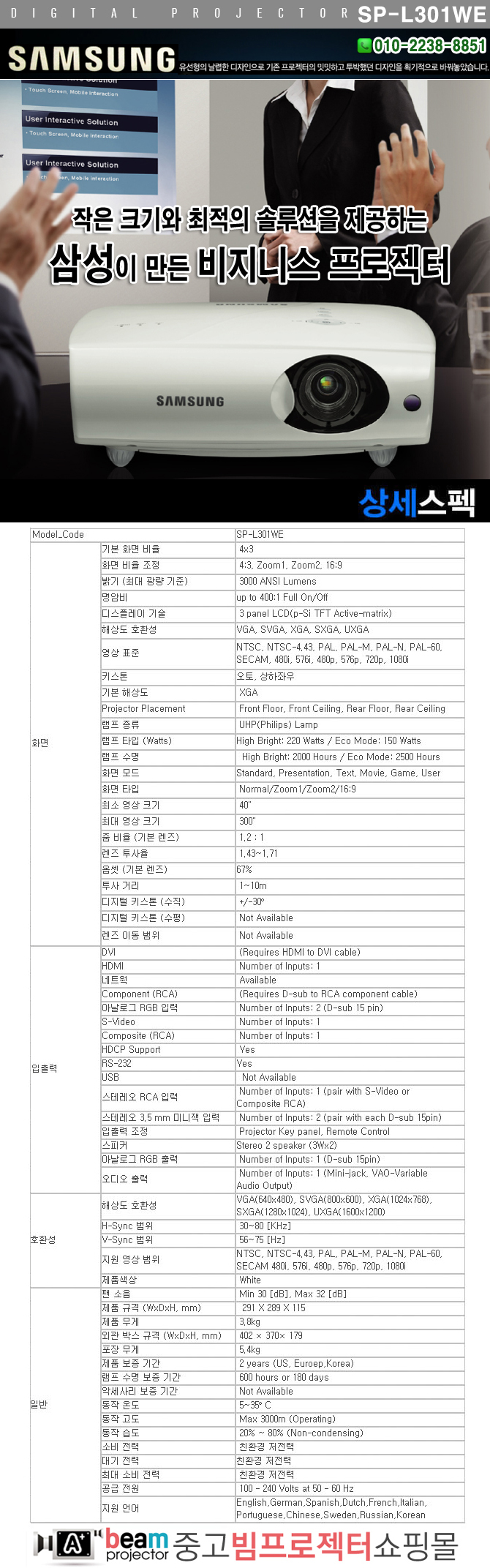 3000¾È½Ã »ï¼º SP-L301WE ºöÇÁ·ÎÁ§ÅÍ Áß°íºöÇÁ·ÎÁ§Æ®