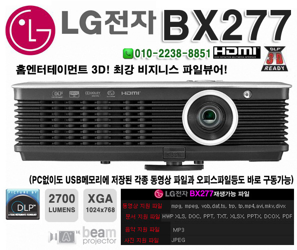 LGÀüÀÚ 3DÇÁ·ÎÁ§ÅÍ BX277 Áß°íºöÇÁ·ÎÁ§ÅÍ 2700¾È½Ã DLPÇÁ·ÎÁ§ÅÍ