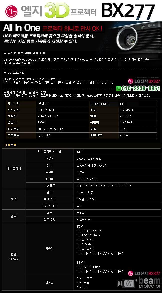 3D ±â´É Áö¿ø ÇÁ·ÎÁ§ÅÍ LG BX277 Áß°íºöÇÁ·ÎÁ§ÅÍ Àú·ÅÇÑ ·¥ÇÁ ±³È¯ ºñ¿ë