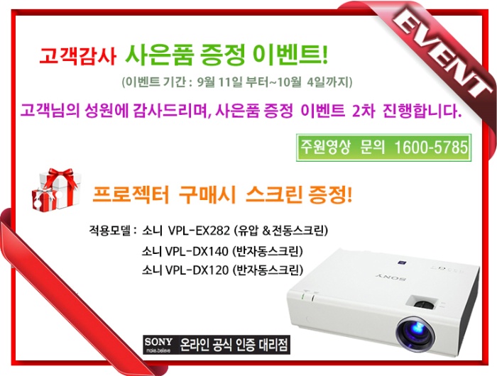 [ÆË´Ï´Ù]¼Ò´Ï ½ÅÁ¦Ç° °í°´°¨»ç À̺¥Æ®/½ºÅ©¸° ÁõÁ¤/ VPL-DX140 [±â°£9¿ù11ÀÏ~10¿ù4Àϱî