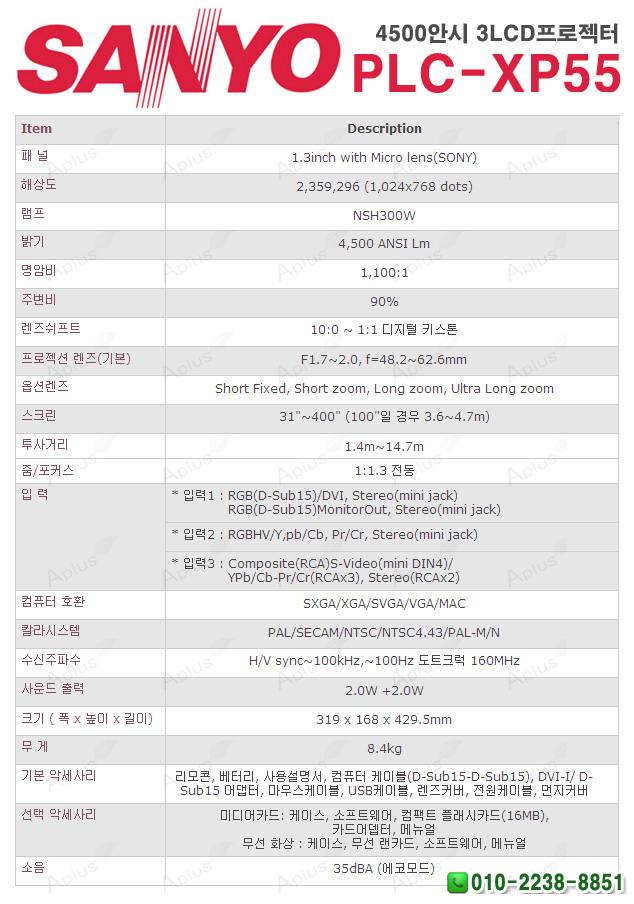 SANYO PLC-XP55 Áß°íºöÇÁ·ÎÁ§ÅÍ 4500¾È½ÃÀÇ ¹à±â °í¾È½Ã ¸ðµ¨·Î