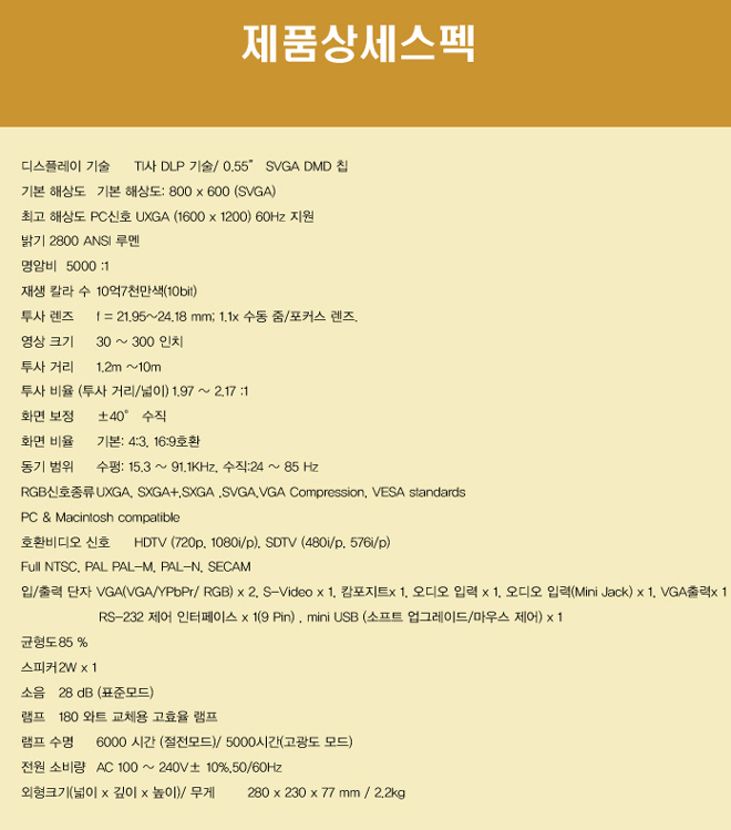 [ÆË´Ï´Ù]Áß°íºöÇÁ·ÎÁ§ÅÍ NEC NP-V260 ¼ÒÇüºöÇÁ·ÎÁ§Æ®