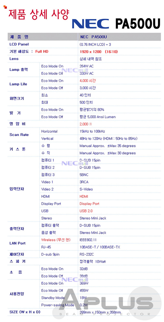 NEC NP-PA500U Ç®HDÇÁ·ÎÁ§ÅÍ ±âº» 5000¾È½Ã·ç¸àÀÇ °íÈÖµµ ¹à±â¿¡