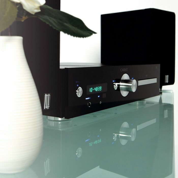 The unit benefits from the same design care as the separated elements of Carat 57 series with a black finish and a brushed aluminum touch. The i57 holds a high-precision CD player with Burr-Brown PCM1732 24 bits/96kHz DACs, a AM/FM RDS radio tuner and a stereo amplifier delivers 2x 50W / 8¥Ø or 2x 80W / 4¥Ø with a distortion less than 1%. The i57 is equipped with bass, treble and balance settings and all basic play controls can be done through the joystick on the front panel. Carat did not forget about MP3 users because the i57 has a 3.5mm jack auxiliary input. This nice audiophile system retails for around 1,200¢æ.