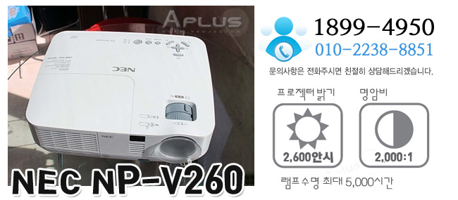NEC ¼ÒÇü Áß°íºöÇÁ·ÎÁ§ÅÍ NP-V260 ½ÇÁ¦ »ç¿ë½Ã°£ 20½Ã°£