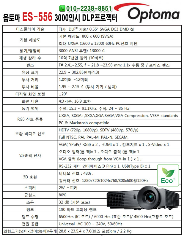 OPTOMAÀÇ ¿¡ÄÚÇ÷¯½º ½Å±â¼úÀÌ Àû¿ëµÈ ºöÇÁ·ÎÁ§ÅÍ ÀÔ´Ï´Ù.
