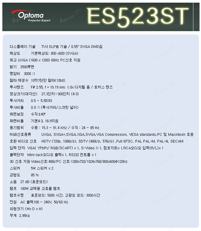 ¸ðµ¨¸í¢º [¿ÉÅ丶 ES523ST] OPTOMA DLPÇÁ·ÎÁ§ÅÍ (2500¾È½Ã)
