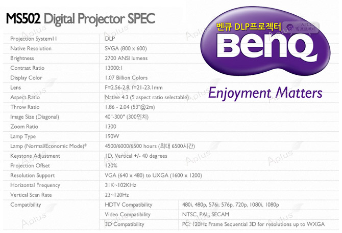 Áß°í ¾ÈÁ¤¼ºÀÌ °ËÁõµÈ º¥Å¥ºöÇÁ·ÎÁ§ÅÍ DLPÇÁ·ÎÁ§ÅÍ MS502ÀÇ