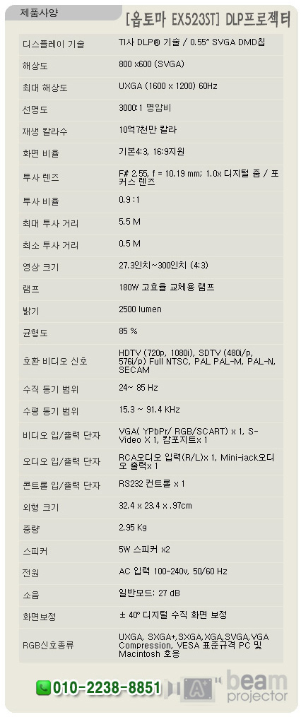 ¿ÉÅ丶 ES523ST DLP¹æ½ÄÀÇ ¸ðµ¨ÀÔ´Ï´Ù.