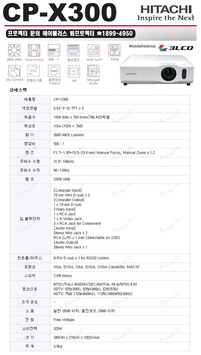 HITACHI CP-X300 ÇÁ·ÎÁ§ÅÍ Áß°íºöÇÁ·ÎÁ§Æ® ·¥ÇÁ »õ°É·Î ±³Ã¼µÇ¾î ÀÖ½À´Ï´Ù.