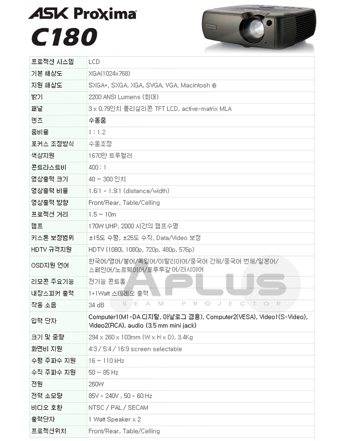 ASK ÇÁ·Ï½Ã¸¶ C180 ÇÁ·ÎÁ§ÅÍ´Â ÀÎÆ÷Ä¿½º LP-640 °ú µ¿ÀÏ ¸ðµ¨·Î