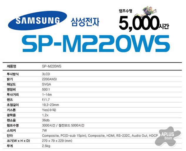 ÀÛÁö¸¸ ½Ç¿ëÀûÀÎ ¼º´ÉÀÇ Áß°í »ï¼º SP-M220WS ºöÇÁ·ÎÁ§ÅÍ HDMI´ÜÀÚ±îÁö °®Ãá ¸ðµ¨ÀÔ´Ï´Ù.