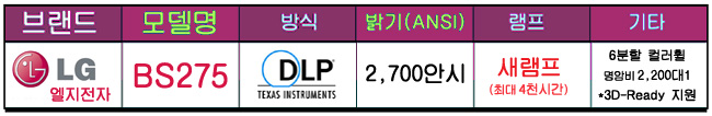 2700¾È½Ã ·ç¸à ¼ÒÇüºöÇÁ·ÎÁ§ÅÍ LG BS275 Áß°íºöÇÁ·ÎÁ§ÅÍ 6ºÐÇÒ Ä÷¯ÈÙÀÌ Å¾ÀçµÈ ¸ðµ¨ÀÔ´Ï´Ù.