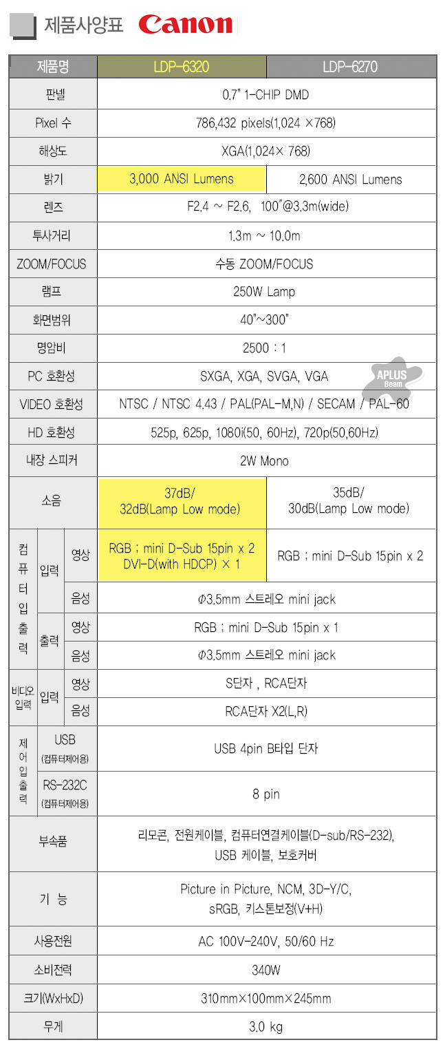Á¦Ç°¸í : Canon LDP-6320 (Áß°íºöÇÁ·ÎÁ§Æ®)