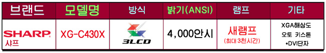 DVI´ÜÀÚµî ´Ù¾çÇÑ ÀÔ·ÂÀ» ÁÖ°í ¹ÞÀ» ¼ö Àִ ȣȯ¼ºµµ ¿ì¼öÇÑ ÇÁ·ÎÁ§ÅÍ·Î »þÇÁ ³ëÆ®ºñÁ¯ XG-C430X´Â PC½ÅÈ£ SXGA+ÇØ»óµµ±îÁö ¼ö½Å °¡´ÉÇÏ¸ç ¸Æ 21ÀÎÄ¡ Áö´ÉÇü ¾ÐÃà¹æ½ÄÀÇ °íÇØ»óµµ À̹ÌÁö±îÁö »þÇÁÀÇ µ¶ÀÚÀûÀÎ AICS ±â¼úÀ» ÀÌ¿ëÇÏ¿© ¿Ïº®ÇÏ°Ô ¾ÐÃàÀ» Áö¿øÇÏ´Â °í¼º´É ºöÇÁ·ÎÁ§ÅÍ ÀÔ´Ï´Ù.