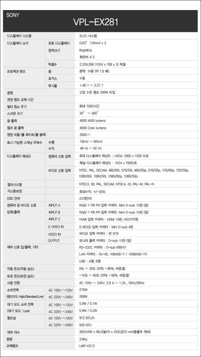 Áß°íºöÇÁ·ÎÁ§Æ® ¼Ò´Ï 4000¾È½Ã VPL-EX281 µ¿±ÞÃÖ° 7000½Ã°£ ·¥ÇÁ ¼ö¸íÀ» ÀÚ¶ûÇÕ´Ï´Ù.